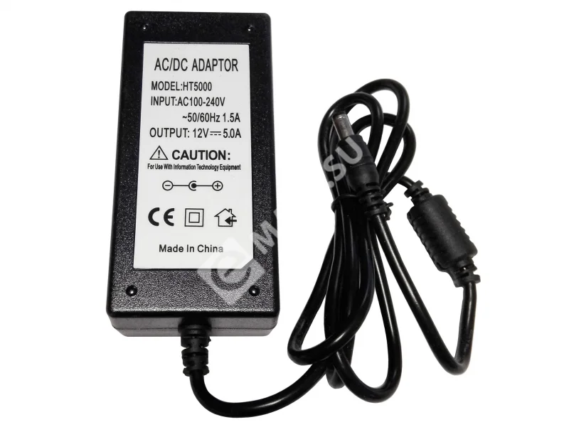 12 В, 5 А, 60 Вт, негорючий корпус.
