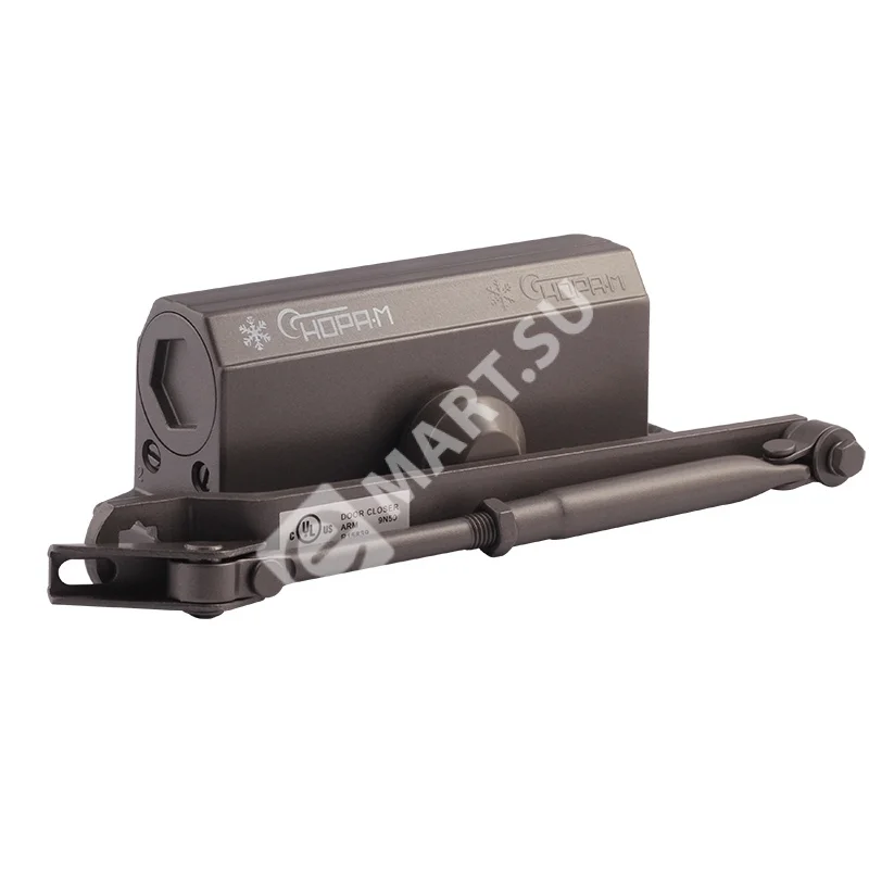 Универсальный по типу установки доводчик модели 3S с малым рычагом. Механизм устанавливается на двери весом 50–80 кг, сделанные из дерева, пластика, металла и других материалов. Рекомендуется для дверей, не требующих открывания на 180˚ (например, в тех случаях, когда открывание ограничено стеной). Для увеличения угла открывания двери до 180˚ корпус доводчика крепится на короб двери с противоположной стороны от петель. Подробно о выборе места установки можно прочитать в инструкции к изделию.