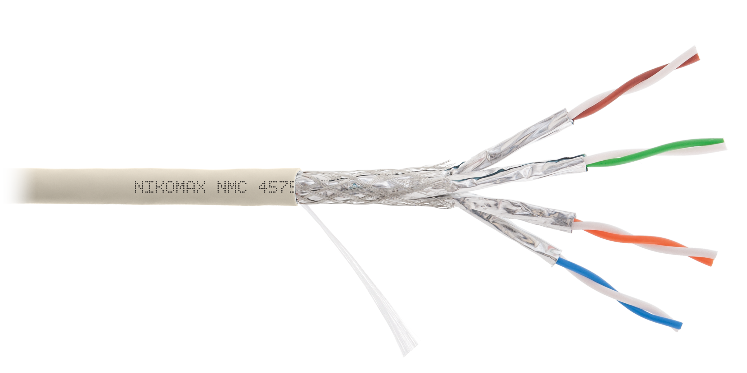 Кабель NIKOMAX S/FTP 4 пары, Кат.7a (Класс Fa), тест по ISO/IEC, 1000МГц, одножильный, BC (чистая медь), 23AWG (0,58мм), полимерный материал нг(А)-LSLTx, внутренний, светло-серый, 500м - гарантия: 5 лет /15 лет системная