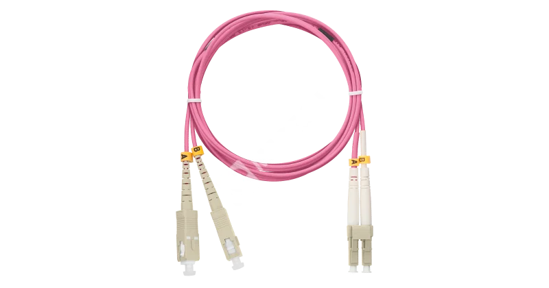 Шнур NIKOMAX волоконно-оптический, переходной, многомодовый 50/125мкм, стандарта OM4, SC/UPC-LC/UPC, двойной, полимерный материал нг(A)-HF, 2мм, маджента, 3м