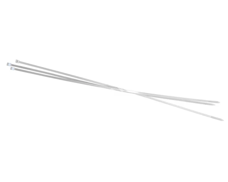 Допускается отклонение в размерах в пределах +/-3% Длина: 500мм Ширина: 4,8мм Прочность на разрыв (кг): 22 Упаковка: 100 шт. Цвет: белый Диапазон температур: эксплуатация от -35С до +85 С хранение от 0С до +40 С, при влажности от 50 до 70% (перед началом монтажа стяжки должны находиться в таких же условиях не менее 24 часов) Стяжки должны храниться вдали от обогревательных и отопительных приборов. рекомендуемая температура монтажа от +5С до +50 С Диаметр обхвата проводов и кабелей: от 3 до 150 мм Материал: нейлон 66 Замковый механизм одностороннего хода. Неразъемный