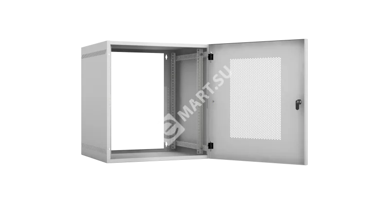 Настенный шкаф 19", 12U, перфорированная дверь, Ш540хВ573хГ500мм, 2 пары монтажных направляющих, сварной, серый
