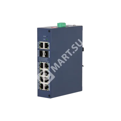 Порты: 8 RJ45 10/100/1000Мбит/с, 2 RJ45 10/100/1000Мбит/с, 2 SFP 1000Мбит/с (uplink); питание: 12В(DC); грозозащита: до 6кВ; рабочая температура: -30°С~+65°С; IP30, IK06; монтаж на DIN-рейку